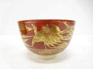 作家物 九谷焼 金彩 鳳凰 茶碗