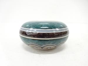 九谷焼 西田伸也造 色絵 群鶴 香合