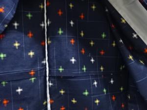 未使用品 十字絣織り出し手織り紬単衣着物