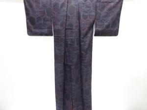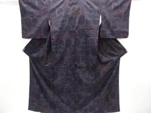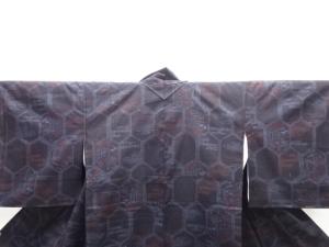 未使用品 重要無形文化財本場結城紬80亀甲 屋敷に花模様織り出し着物