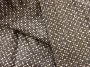 洗練された落ち着きのある色合いで、生地そのものは柔らかく、しわになりにくいと言われている。大島紬の特徴とも言える、織締めと呼ばれる技法で藍を用いて染められた糸を使用している。