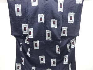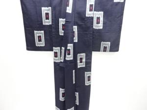 大正ロマン 重ね枡模様織出しお召単衣着物