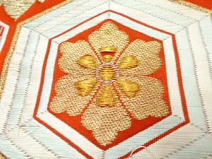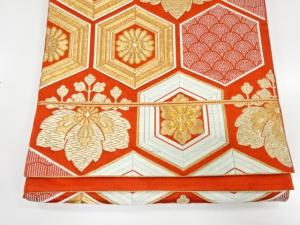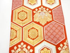 アンティーク 桐に花亀甲模様織り出し袋帯(着用可)