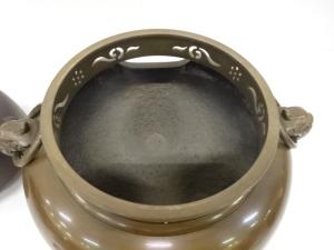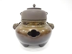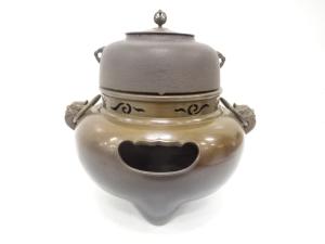 麻生雄芳・釜師畠春斎造 唐銅 鬼面風炉釜添(釜釻付)