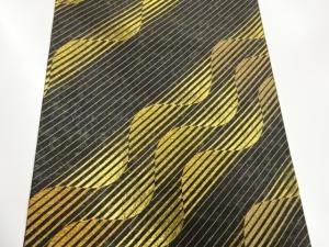 高島織物製 青銅箔斜線によろけ横段模様織出し袋帯