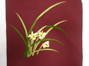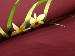 アンティーク 塩瀬 草花模様刺繍名古屋帯