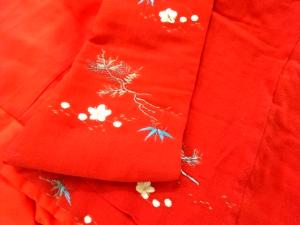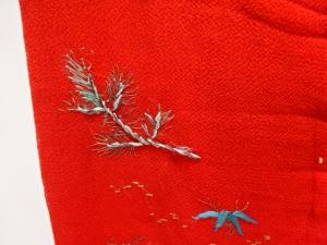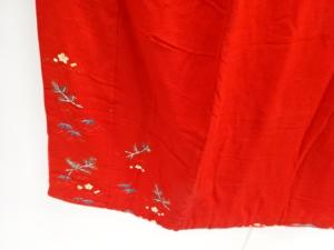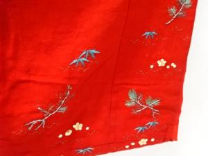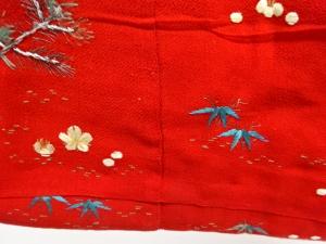 アンティーク 時代衣装 江戸縮緬 松竹梅模様刺繍着物(比翼付き)