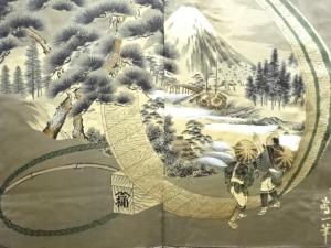 アンティーク 時代人物風景模様肩裏本場泥大島紬男物羽織