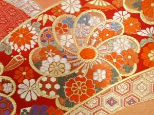 変わり青海波に宝尽くし・花模様織り出し 振袖用袋帯