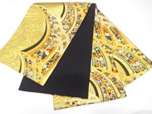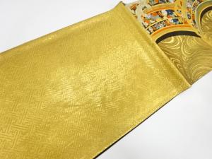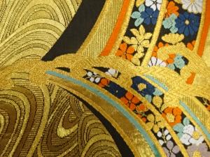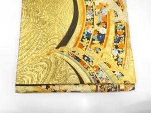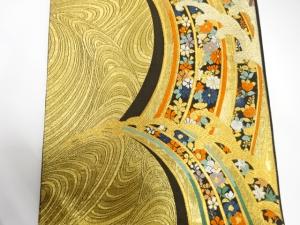 荒波に花模様織り出し 振袖用袋帯