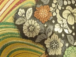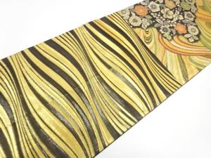 流水に花模様織り出し 振袖用袋帯