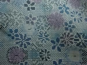洗練された落ち着きのある色合いで、生地そのものは柔らかく、しわになりにくいと言われている。大島紬の特徴とも言える、織締めと呼ばれる技法で藍を用いて染められた糸を使用している。