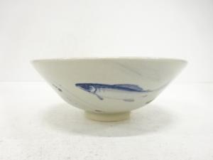 薩摩焼 沈寿宮造 染付 鮎文 茶碗