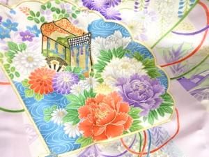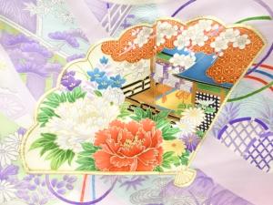 アンティーク 檜扇に牡丹模様刺繍振袖
