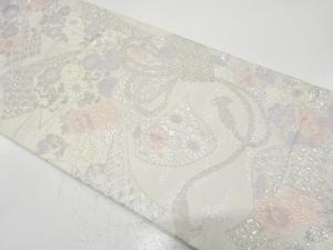 アンティーク 束ね熨斗に菊・梅・牡丹模様織り出し袋帯(材料)