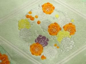 アンティーク 斜め格子に花丸模様織り出し袋帯(材料)