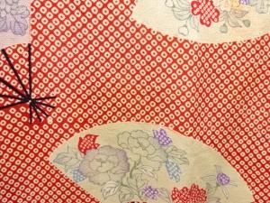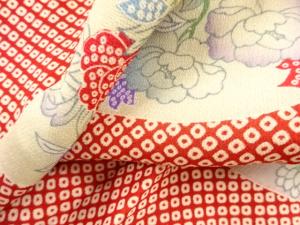 アンティーク 錦紗疋田に花扇模様長襦袢
