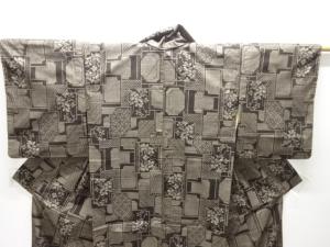 アンティーク 色紙に枝花模様織り出し本場泥大島紬着物(5マルキ)
