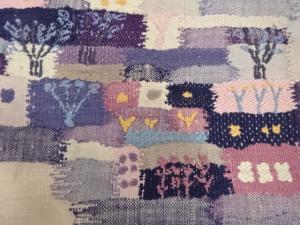 手織り真綿紬 枡に草花模様織り出し 名古屋帯