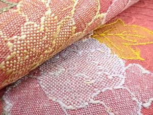 手織り紬 流水に牡丹模様織り出し 名古屋帯