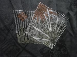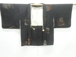 大正ロマン 漆破れ色紙に花模様織り出し一つ紋羽織
