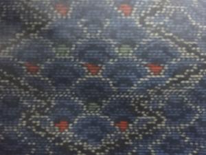 洗練された落ち着きのある色合いで、生地そのものは柔らかく、しわになりにくいと言われている。大島紬の特徴とも言える、織締めと呼ばれる技法で藍を用いて染められた糸を使用している。