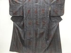 アンティーク 変わり亀甲繋ぎ模様織出し本場泥大島紬着物