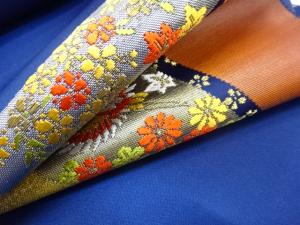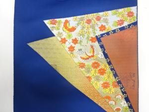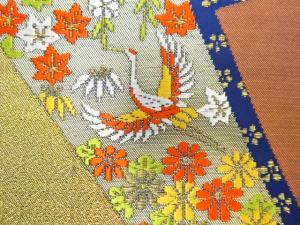 アンティーク いづくら製 鶴に草花・古典柄織り出し 名古屋帯地反物