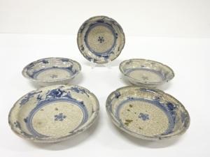 古伊万里 ヒビ焼 染付 小皿 5客