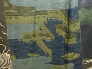 アンティーク 厳島神社模様肩裏本場泥大島紬男物羽織