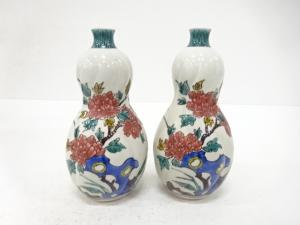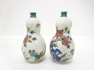 九谷焼 徳田八十吉造 古九谷写意 捻瓢形 徳利 一対