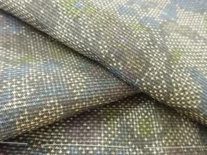 洗練された落ち着きのある色合いで、生地そのものは柔らかく、しわになりにくいと言われている。大島紬の特徴とも言える、織締めと呼ばれる技法で藍を用いて染められた糸を使用している。