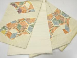 アンティーク 地紙に若松・亀甲模様織り出し袋帯(材料)