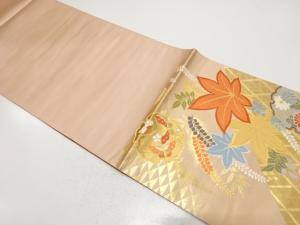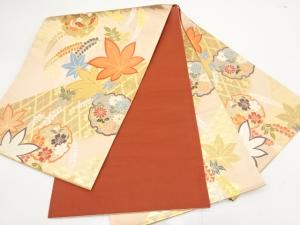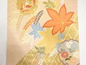 未使用品 楓に雪輪・藤・蝶模様織り出し 振袖用袋帯