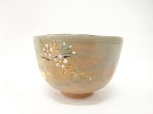京焼 橋本紫雲造 金彩色絵 乾山写 柳桜 茶碗