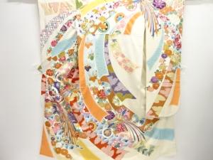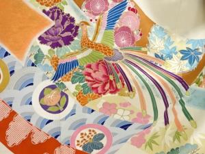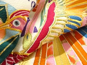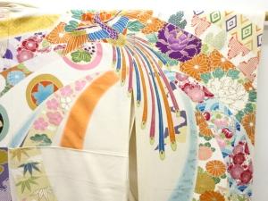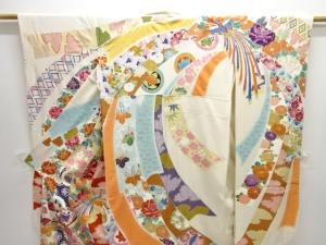 アンティーク 尾長鳥に花古典柄刺繍振袖