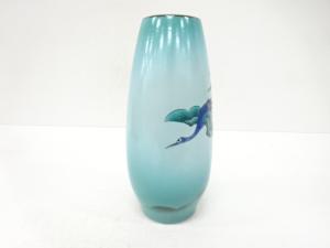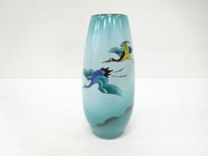 九谷焼 山中国盛造 色絵 双鶴 花瓶