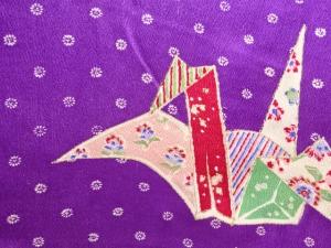 アンティーク 錦紗折鶴に花模様着物
