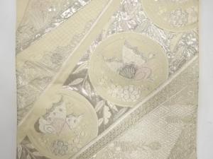 アンティーク プラチナ箔 蝶に草花模様織り出し袋帯(材料)