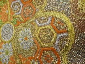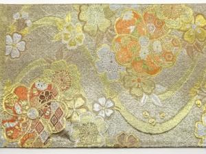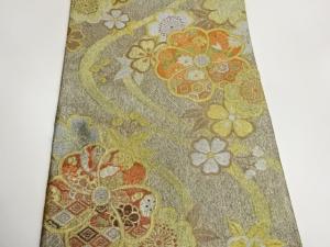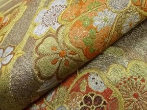 曲線に桜・菊・亀甲模様織出し袋帯