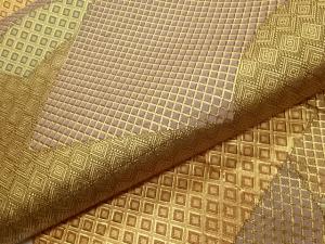 金、銀、漆を貼った特製の和紙を細く裁断したものを経糸とし、絹の撚糸を染色したものを緯糸として織り上げたもので、網代(あじろ)、紗綾(さや)型、菱等などの多様な模様を持つ。