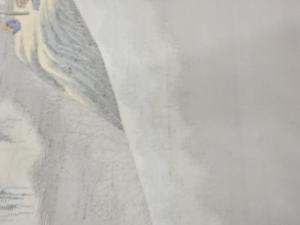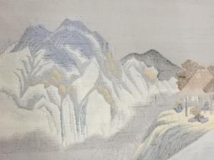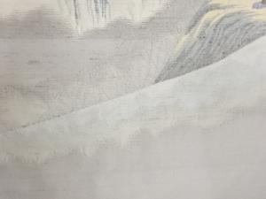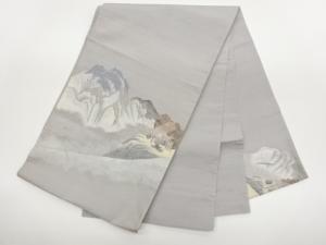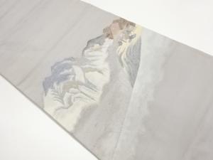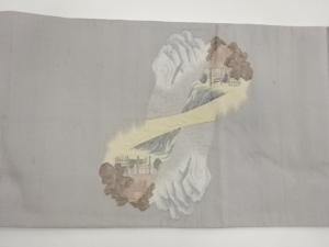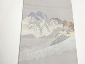 手織り紬遠山に家屋・人物模様織出し袋帯