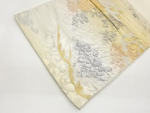 プラチナ二重箔渓谷に舟・人物模様織出し袋帯