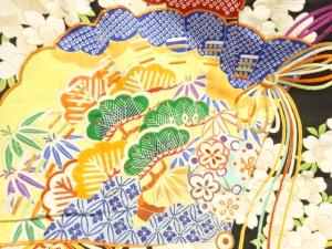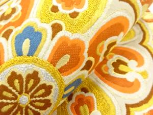 大正ロマン 錦紗檜扇に花鳥模様刺繍五つ紋花嫁衣装振袖・丸帯セット