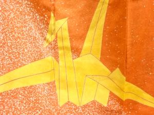 大正ロマン 錦紗折鶴模様三つ紋舞妓衣装引きずり(比翼付き)