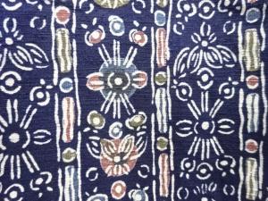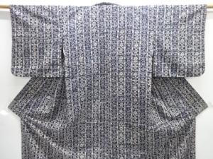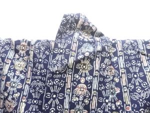 型染 縞に草花模様上代紬着物