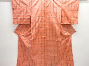 未使用品 縞に十字絣織出し手織り紬着物