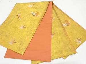 青銅箔 蝶に芒模様織り出し 袋帯