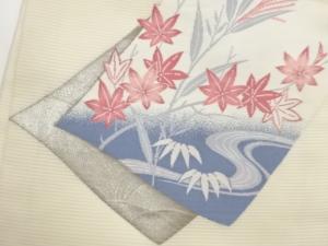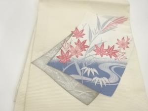 絽色紙に草葉・流水模様織出し名古屋帯