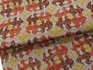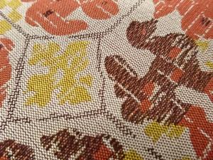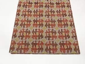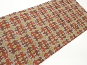 抽象向かい動物模様織出し開き名古屋帯(額縁仕立て)